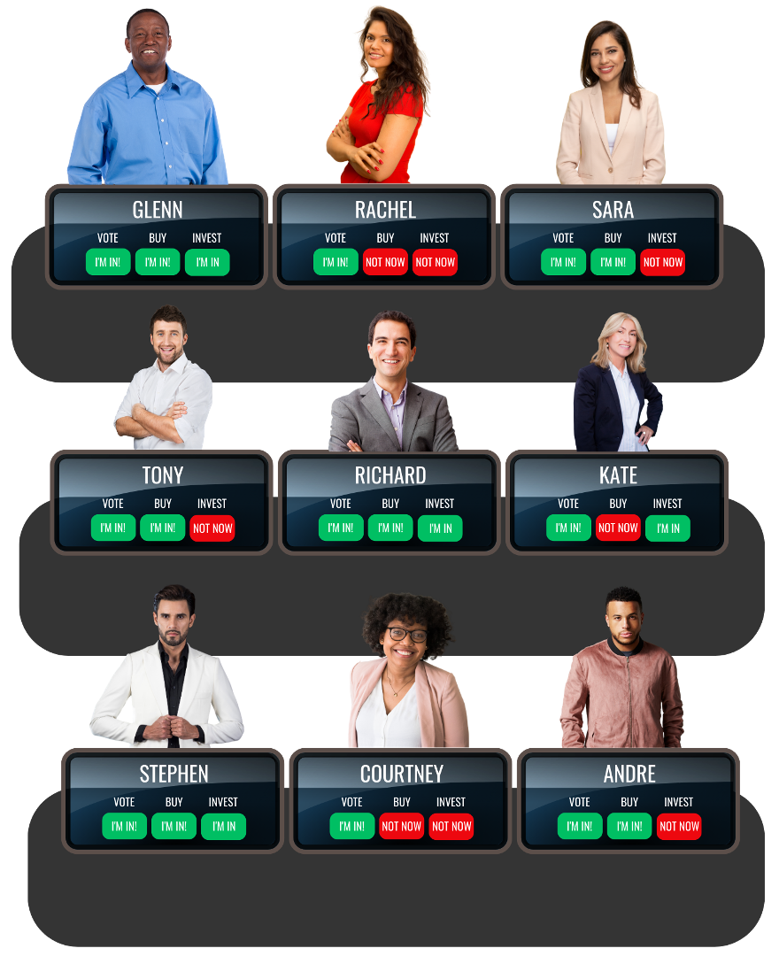 This is your show! You help determine which company will be the Season Two Champion. The contest is based on who raises the most money, sells the most product and receives the most votes. You help decide who wins by supporting your favorite business. You can invest, buying ownership into their company, you can buy their product, and vote for them by sharing out their story to your social media. Get to know the business owners not just their business model. No sharks here, but rather BUSINESS ICONS – PEOPLE INVESTING IN PEOPLE.™